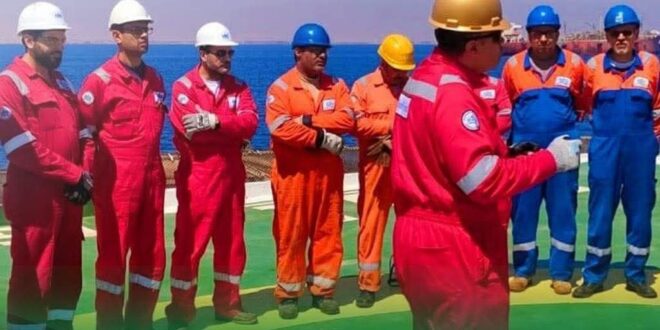 رئيس خدمات البترول البحرية PMS يتفقد البارج 11 لمتابعة أعمال إنزال الخط البحري 4 بوصة بمشروع تنمية حقل الزعفرانة البحري