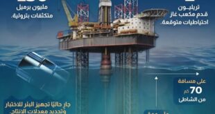 أعلنت وزارة البترول والثروة المعدنية تحقيق كشف مهم للغاز الطبيعي في البحر المتوسط بواسطة شركة إيني الإيطالية، باحتياطيات متوقعة 2 تريليون قدم مكعب غاز، و130 مليون برميل متكثفات بترولية.