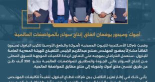 وقعت شركتا الأسكندرية للزيوت المعدنية (أموك) والشرق الأوسط لتكرير البترول (ميدور) اتفاقاً مشتركاً بحضور المهندس صلاح عبدالكريم الرئيس التنفيذى للهيئة المصرية العامة للبترول ، ستعمل الشركتان بموجبه علي التعاون لزيادة الكميات الموجهة للسوق المحلى من إنتاج السولار عالى الجودة والمطابق للمواصفات العالمية بنحو ٣٥٠ ألف طن عن طريق تحسين منتج أموك وتحويله إلى منتج مطابق للمواصفة العالمية. *يأتي …