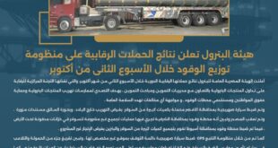 ه أعلنت الهيئة المصرية العامة للبترول نتائج حملاتها الرقابية الدورية خلال الأسبوع الثاني من شهر أكتوبر، والتي نفذتها اللجنة المركزية للرقابة على تداول المنتجات البترولية بالتعاون مع مديريات التموين ومباحث التموين ، بهدف التصدي لممارسات تهريب المنتجات البترولية وحماية حقوق المواطنين ومستخدمي محطات الوقود ، و مواجهة أي مخالفات تهدد السلامة العامة . وتم ضبط سيارة صهريجية بمحافظة الأقصر …