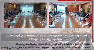 أكمل القراءة »مناقشة الموازنات والخطة الخمسية للإنتاج لشركة شمال سيناء للبترول وبترول أبوزنيمة – بتروملك