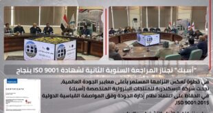 فى إطار سعيها للدخول لأسواق جديدة ومزيد من دعم قدرات الأداء المؤسسى ، نجحت شركة الإسكندرية للمنتجات البترولية المتخصصة (أسبك) في اجتياز أعمال المراجعة السنوية الثانية لنظام إدارة الجودة بنجاح، وفقاً لمتطلبات المواصفة القياسية الدولية ISO 9001:2015 وقد أُجريت أعمال التدقيق والتقييم الشامل متعددة المراحل والتى شملت تدقيقاً داخلياً بجميع الإدارات للتاكد من كفاءة النظام تلاه تدقيق خارجى …