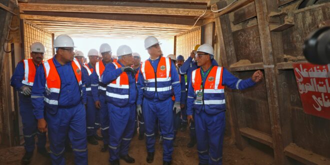 وعقب ذلك ، قام وزير البترول والثروة المعدنية ومحافظ الوادي الجديد والمرافقون بتفقد مراحل الإنتاج فى مناجم قطاع 8 وشرائح الفوسفات وكذلك فوهت المنجم تحت سطح الارض ، حيث استمع الوزير والمرافقون إلى شرح من شباب المهندسين في المنجم حول مراحل الإنتاج بدء من عمليات الاستكشاف والاستخراج والتكسير حتى المراحلة النهائية لإنتاج الفوسفات الخام ، وشدد بدوى خلال الجولة على الالتزام بإجراءات السلامة والصحة المهنية خاصة مع هذه الاعمال التى تتطلب يقظة تامة اثناء العمل وذلك لتوفير بيئة عمل امنه لجميع العاملين.