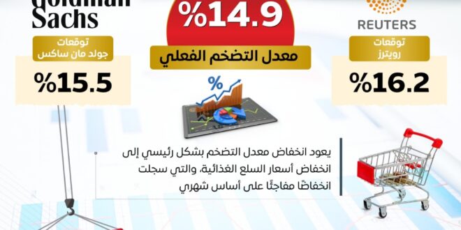 بفضل جهود الدولة في خفض التضخم وتوفير السلع وضبط أسعارها، ونتيجة لتأمين مخزون استراتيجي من السلع الأساسية، سجل معدل التضخم العام لحضر الجمهورية معدلات سالبة على أساس شهري لأول مرة منذ بداية العام، وانخفض على أساس سنوي لأول مرة بعد ٣ أشهر من الارتفاع ليسجل ١٤.٩% خلال يونيو ٢٠٢٥ وذلك نتيجة انخفاض أسعار الطعام والمشروبات.