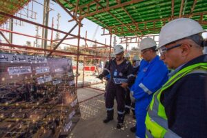 ثم اعقب ذلك تفقد الوحدات الإنتاجية وغرف التحكم بشركة أسيوط، قبل أن يتوجّه رئيس الهيئة يرافقه القيادات ورؤساء الشركات إلى موقع مشروع أنوبك، لمتابعة مستجدات التنفيذ على الأرض. وخلال الجولة، شدّد سيادته على ضرورة تسريع وتيرة الأعمال، وزيادة أعداد العمال بالموقع وسرعة تسليم المشروع بما يضمن بدء التشغيل المبدئي في أقرب وقت، دون الإخلال بمعايير الجودة أو السلامة.