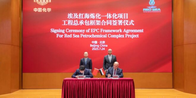 في خطوة جديدة تعكس عمق الشراكة الاستراتيجية المتنامية بين مصر والصين في قطاع البتروكيماويات، شهدت العاصمة الصينية بكين توقيع اتفاق إطار غير ملزم بين شركة البحر الأحمر الوطنية للبتروكيماويات وشركة الصين الوطنية للهندسة الكيميائية (CNCEC)، وذلك لتنفيذ مشروع البحر الأحمر للبتروكيماويات بالمنطقة الاقتصادية لقناة السويس.