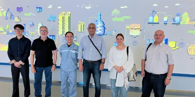 وفي مدينة زيبو، زار الوفد مصنع شركة TCC لإنتاج النايلون، حيث تم تقديم عرض فني شامل حول العملية الإنتاجية باستخدام تكنولوجيا “الهايدروسياندة المباشرة للبيوتاديين” (Butadiene Hydrocyanation)، وهي تقنية صينية مسجلة منذ عام 2015. وتبلغ الطاقة الإنتاجية للمشروع في مرحلته الأولى نحو 300 ألف طن من الأكريلونيتريل، و200 ألف طن من الهكسانثنائي الأمين، و200 ألف طن من الأديبونتريل، إضافة إلى 200 ألف طن من منتج نايلون 66 ومشتقاته، بإجمالي استثمارات تصل إلى 10.4 مليار يوان صيني.