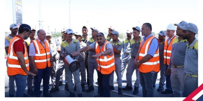 وقام السيد الكيميائي/ محمد ابراهيم مدير عام السلامة والصحة المهنية والبيئة والجودة باستعراض حالات الطواري التي يتم بها استخدام وحدات الإطفاء المتنقلة بالمادة الرغوية، ووسائل وكيفية استخدامها، بالإضافة الي أهمية الفحص والصيانة الدورية لها ولكافة معدات الإطفاء ومضخات مياه الحريق وأهمية تنفيذ تجارب الطواري الوهمية بكافة المحطات بصفة دورية.