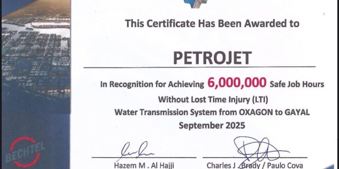 وأكدت الشركة أن هذا الإنجاز يعكس الالتزام الصارم بتطبيق أعلى معايير السلامة والصحة المهنية في مواقع العمل، ويبرهن على كفاءة فرقها وقدرتها على تنفيذ المشروعات الكبرى بأعلى مستويات الجودة والأمان.