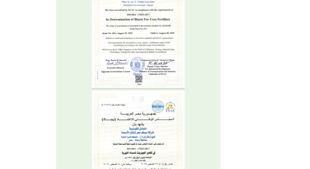 تماشياً مع توجيهات السيد المهندس/ كريم بدوي وزير البترول والثروة المعدنية , و دعم السيد المهندس/ ابراهيم مكي رئيس الشركة المصرية القابضة للبتروكيماويات ” إيكم ” ووفقاً لإستراتيجية شركة مصر لإنتاج الأسمدة “موبكو” الرامية إلى الارتقاء بمستوى الأداء الفني والمعملي، وتحقيق أعلى درجات الاعتمادية في نتائج التحاليل والتي تمثل محوراً رئيسياً في عمليات التصنيع ومراقبة الجودة , حققت الشركة إنجازاً جديداً يُضاف إلى سجل نجاحاتها، بعد حصول معاملها على شهادة الاعتماد الدولي ISO/IEC 17025، المعترف بها عالمياً كمعيار مرجعي لكفاءة المختبرات في تنفيذ الاختبارات والمعايرات بدقة واحترافية عالية .