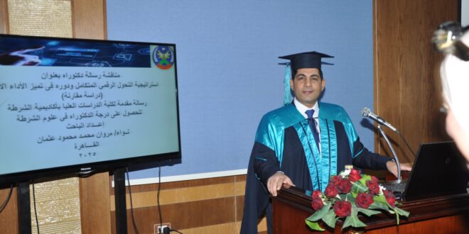 وأُقيمت المناقشة أمس السبت الموافق 27 ديسمبر 2025، حيث تناولت الرسالة الدور المحوري للتحول الرقمي في تطوير منظومات العمل الأمني، وتعزيز كفاءة الأداء المؤسسي لمواجهة التحديات المعاصرة.