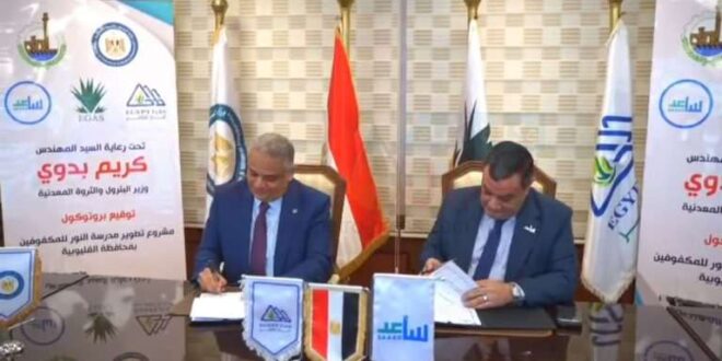 قام السيد المهندس/ محمد حسن قنديل، رئيس مجلس إدارة شركة غاز مصر، والسيد الدكتور/ أكمل سامي نجاتي، رئيس مجلس أمناء مؤسسة «ساعد للتنمية والتطوير»، يوم الأحد الموافق 18/1/2026، بتوقيع بروتوكول مشروع تطوير مدرسة النور للمكفوفين بمدينة بنها بمحافظة القليوبية.