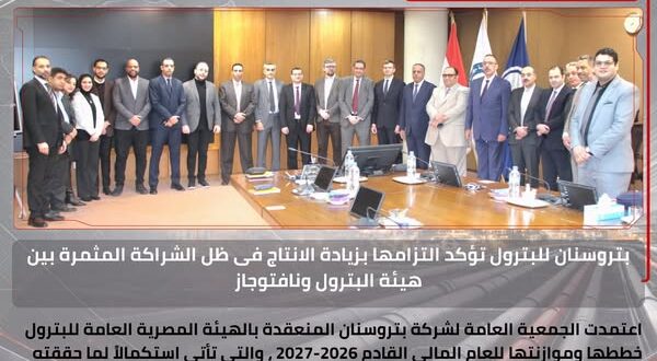 اعتمدت الجمعية العامة لشركة بتروسنان المنعقدة بالهيئة المصرية العامة للبترول خططها وموازنتها للعام المالى القادم 2026-2027 ، والتى تأتى استكمالاً لما حققته من نتائج طيبة خلال الفترة الماضية من العام المالى الحالى وحظى بإشادة الجمعية.