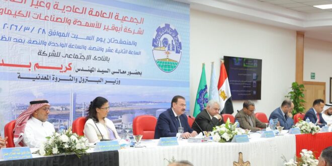 إنعقدت الجمعية العامة العادية وغير العادية لشركة أبوقير للأسمدة والصناعات الكيماوية بمقر الشركة بالأسكندرية، تحت رعاية معالي المهندس / كريم بدوي – وزير البترول والثروة المعدنية
