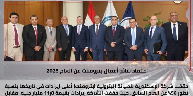 حققت شركة الإسكندرية للصيانة البترولية (بترومنت) أعلى إيرادات في تاريخها بنسبة تطور 56% عن العام السابق، حيث حققت الشركة إيرادات بقيمة 8ر11 مليار جنيه، مقابل 6ر7 مليار جنيه العام السابق، وبزيادة عن المستهدف بنسبة 125% ، مما يعد ترجمة للثقة والإمكانيات التى تقدمها من خلال كوادرها المتخصصة.