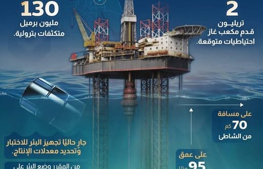 أعلنت وزارة البترول والثروة المعدنية تحقيق كشف مهم للغاز الطبيعي في البحر المتوسط بواسطة شركة إيني الإيطالية، باحتياطيات متوقعة 2 تريليون قدم مكعب غاز، و130 مليون برميل متكثفات بترولية.