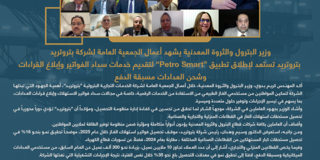 أكد المهندس كريم بدوي، وزير البترول والثروة المعدنية، خلال أعمال الجمعية العامة لشركة الخدمات التجارية البترولية “بتروتريد”، أهمية الجهود التي تبذلها الشركة لتمكين المواطنين من مستخدمي الغاز الطبيعي من الاستفادة من الخدمات الرقمية، خاصة في مجالات سداد فواتير الاستهلاك وإبلاغ قراءات العدادات، بما يسهم في تيسير الإجراءات وتوفير حلول متعددة وميسرة.