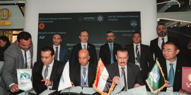 وقّعت كلٌ من شركة أبو قير للأسمدة والصناعات الكيماوية، وشركة الإسكندرية للأسمدة (AlexFert)، إحدى الشركات التابعة لڤالمور القابضة، وشركة أوراسكوم للإنشاءات، وشركة يونايتد إنرجي جروب لتطوير الهيدروجين الأخضر القابضة المحدودة (UEG) ، مذكرة تفاهم على هامش مؤتمر “إجيبس 2026″، بهدف دراسة وتطوير مشروع “مركز البحر المتوسط للهيدروجين الأخضر” في مدينة الإسكندرية، في خطوة استراتيجية تعزز من مكانة مصر كمركز إقليمي وعالمي للطاقة المستدامة.